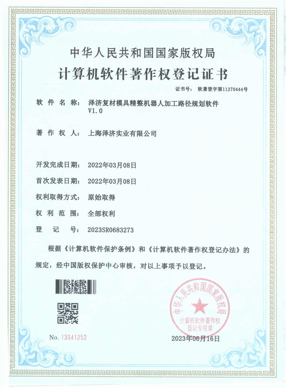 (2023SR0683273)澤濟復材模具精整機器人加工路徑規劃軟件