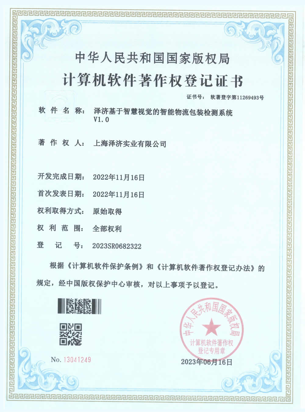(2023SR0682322)澤濟基于智慧視覺的智能物流包裝檢測系統