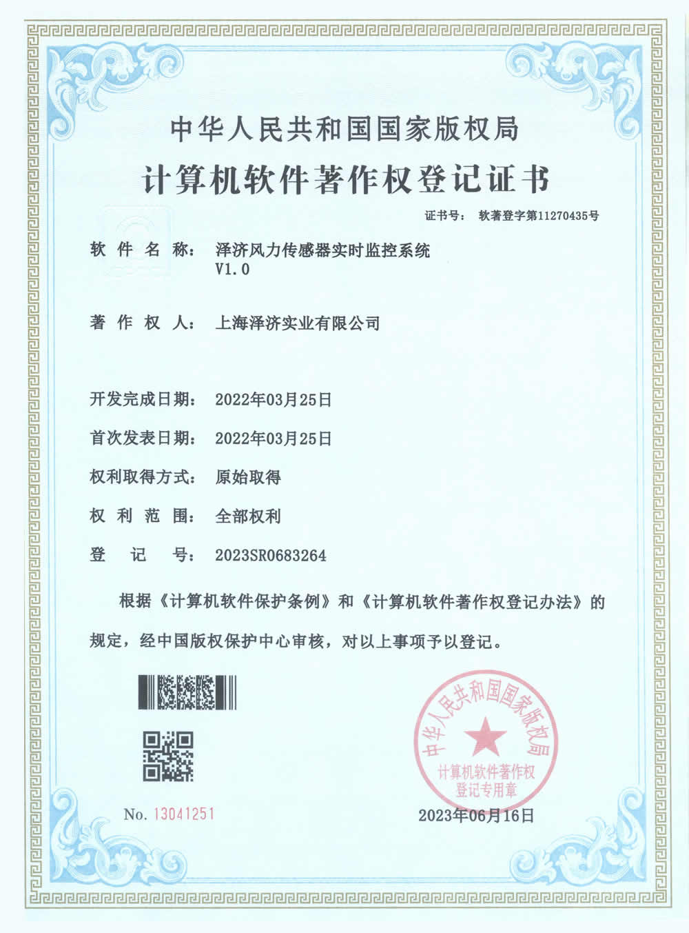 (2023SR0683264)澤濟風力傳感器實時監控系統
